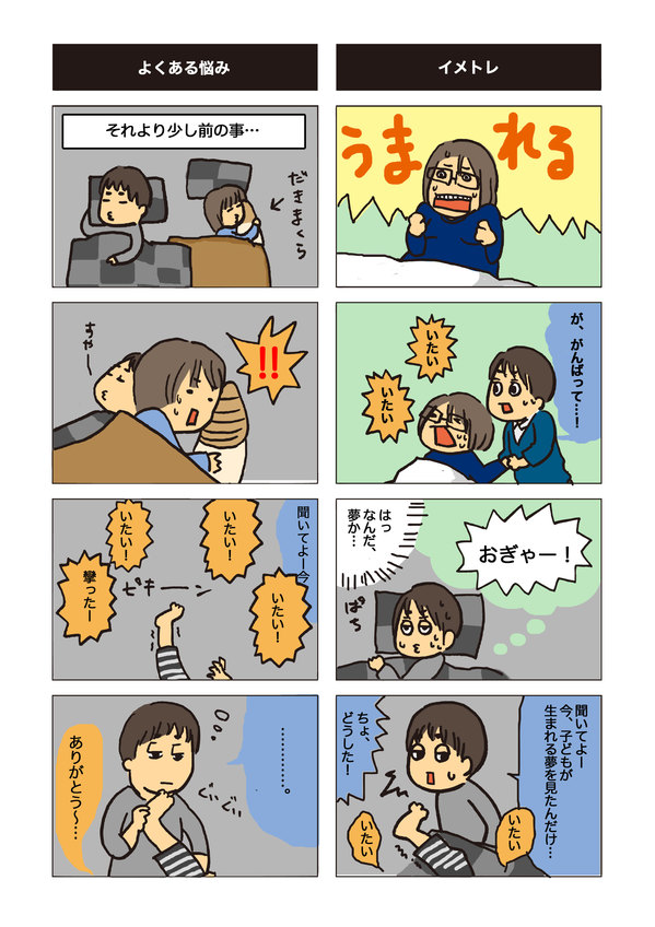 【妊娠29週】第1子妊娠中の夜のトラブル夫編&妻編 長男 妊娠中 X Facebook はてブ コピー 2014.10.092022.02.26旦那さんが4日連続で子ども関連の夢を見たそうです。「子どもがテレパシーを送って来ているに違いない…!」と言ってました。あのぉ…私にはそのテレパシー来てないんですが…一方その頃、私は4日連続足が攣りました。妊娠中には足が攣りやすくなるそうです。体重が増えることで、足の筋肉への負担が増えるのと、カルシウムやマグネシウムの不足が原因とか。。早朝に足が攣ると、旦那さんが伸ばしてくれるので助かります…。