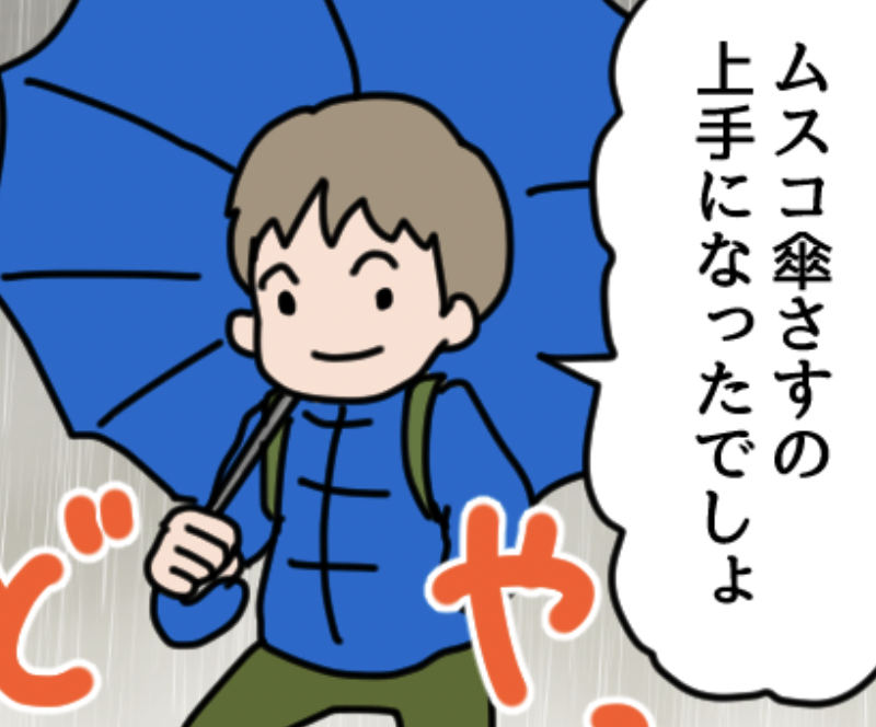 【5歳3ヶ月】傘の呼吸の使い手(に早くなってほしい) 長男 6歳 X Facebook はてブ コピー 2020.03.112022.02.27雨の日の保育園登園。普段は自転車なんですが風が強くて自転車がふらついて怖かったので歩いて行くことにしました。傘をさすのは上手になったムスコですが、突然走ったり、水たまりを飛び越えたりして結局ずぶ濡れになってました。春の雨は風が強いのでしょうがない部分もあるんですが、それにしても濡れすぎ!まぁ5歳児あるあるですかね〜^^;