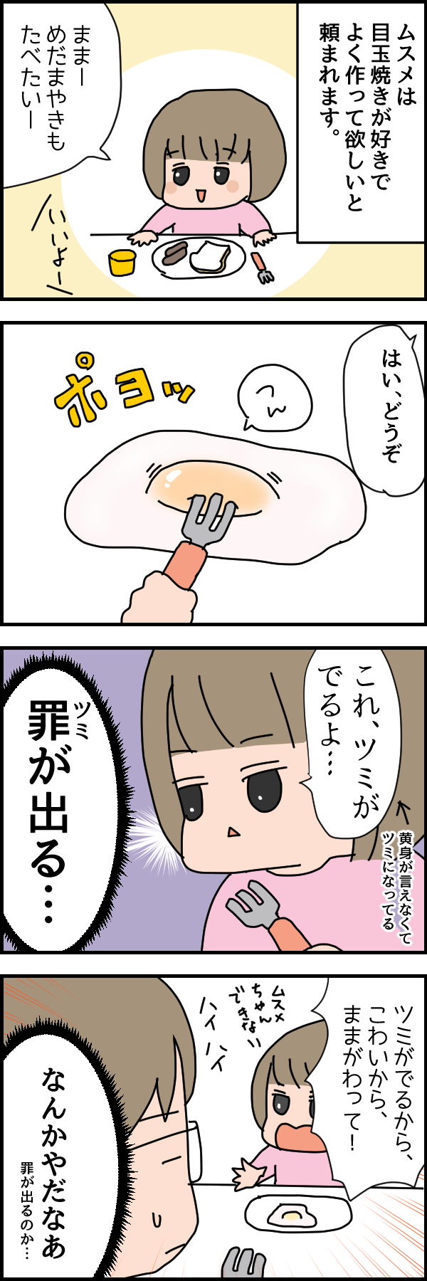 【長女3歳6ヶ月】ムスメの言い間違い大予言 長女 3歳 X Facebook はてブ コピー 2022.03.263歳娘「カ行」がちょっと苦手みたいで、「カ行」が入った言葉を言おうとするとたまーに変な言い間違いをします(笑「ツミ(黄身)」の他にも「クツエ(机)」なんかもあります。こういう言い間違い、なんだか直すのもったいなくてそのままにしちゃいますよね(笑