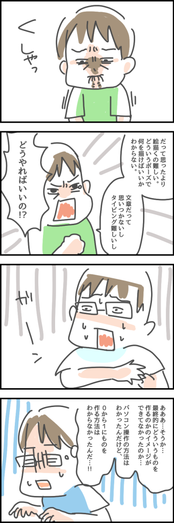 なんでよ!?と聞いたら、PCの操作方法はわかるけど、どんな絵を描いてどんな文章を書いたらいいかが全然思いつかなかったんだというんです。